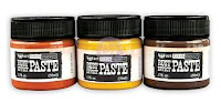 I used Ranger Giant tag and using soft matt gel stuck strips of gauze to create a textured background. I dabbed the Matte Soft Gel on the gauze to stiffen the tag. Once dry, Using a cobblestone stencil and randomly stencilled molding paste over the tag. Using rust effect paste in a variety of colours - brown, green and blue textured patina effect dabbed to add colour and highlight the stencil and gauze. As you dab, spray with water so that the pastes blend into the gauze. You want to be able to see the texture but also blended into the gauze to blur the edges.